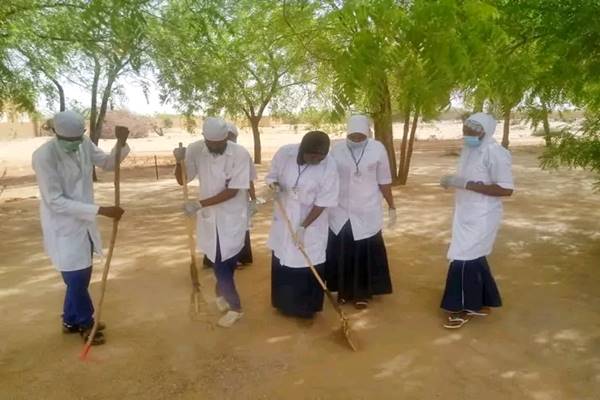 Journée de salubrité à l'hôpital de Cominak par les élèves et étudiants du Groupe Scolaire Akomili du CPSP-ARLIT